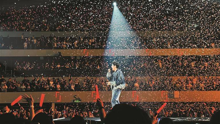 据统计,9月30日至10月4日,大运中心周边重点商圈(大运天地、龙岗星河COCOPark、仁恒梦中心)总人 流量达132.1万人次,环比增长85.27%;营业额突破1.08亿元,环比增长80.94%。演唱会不仅为商圈注入了强 劲客流,更有效带动了周边消费市场的持续升温。 9月30日至10月4日,王力宏"最好的地方"巡回演唱会于深圳大运中心体育馆连续五晚盛大上演。深圳站的演 出不仅刷新了其个人连开场次纪录,更成为今年国庆假期演唱会市场的现象级热点。 这并非孤例。今年以来,深圳"演唱会经济"持续升温,1—8月,深圳已举办5000人以上大型演唱会85场,吸 引超过140万人次到场观演。 "为一首歌,赴一座城"正成为文旅消费的新常态,由此产生的演出经济直接收益、消费乘数效应可观。 "一张票根"串起文旅全链消费 演唱会现场,《爱错》《唯一》《你不知道的事》等曲目频频掀起全场大合唱,荧光摇曳,声浪叠涌,氛围 感持续拉满。从邀请成龙、A-Lin、单依纯等嘉宾轮番登台,为十五运会热情打call,到邀请歌迷品尝当地美 食、身穿深圳校服向城市致敬——王力宏以一系列精心设计的"深圳元素",与这座城市实现了真正意义上 的"同频共振" ...