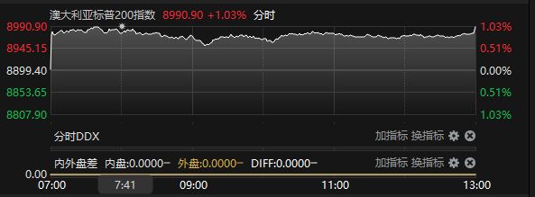 澳大利亚标普200指数涨超1%