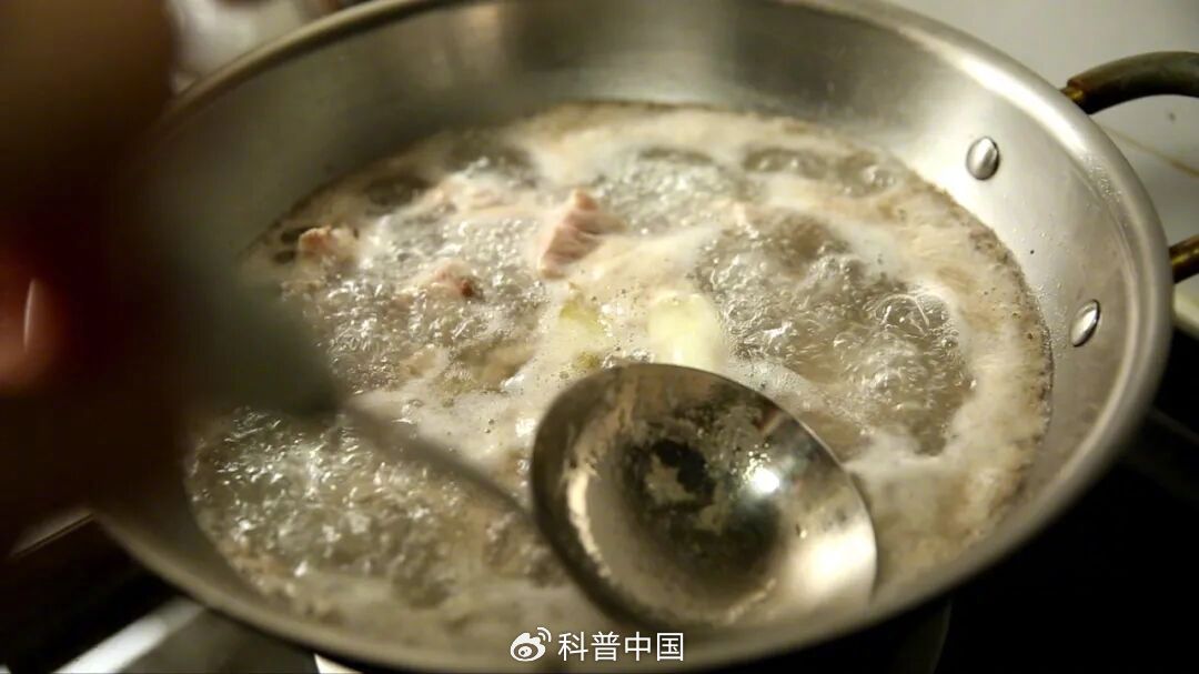 (来源:中国科协) 转自:中国科协 不知道大家注意过没有,炖肉的时候,锅里总会漂着一层浮沫。有时是褐色棉絮状的浮沫、有时又是白色绵密的泡沫。 图库版权图片,转载使用可能引发版权纠纷 有人说这是脏东西,不撇不行,也有人表示这些浮沫正是汤里的"精华",是慢慢煮出来的高营养蛋白质,应该保留。那么,这层看起来不起眼的浮沫到底 是什么?该不该撇?会影响我们的健康吗?今天我们就一次把它讲清。 先说结论: 炖肉时出现的浮沫,并不是什么"营养精华",也不需要特意保留。它本质上是肉类在加热过程中,血水、蛋白质和脂肪等成分受热变化后形成的混合物。 随着温度升高和炖煮时间延长,浮沫的颜色和形态也会发生变化,大致可以分为三个阶段。 其中,第一阶段的红褐色浮沫主要是血水、肌红蛋白和血红蛋白,建议全部撇去;第二阶段的白色浮沫主要是少量蛋白质在高温下析出形成,可以撇去; 第三阶段的黄白色浮沫其实是煮汤过程中溶出的脂肪,是肉汤风味的来源之一,可以根据减脂需求决定是否撇去。 下面就具体来看看为什么会有这些浮沫,以及该如何处理。 第一阶段:红褐色浮沫 煮肉,特别是煮牛肉这种红肉时,需要冷水下肉,等到水开后汤的表面会逐渐浮起一层红褐色、棕色的泡沫 ...