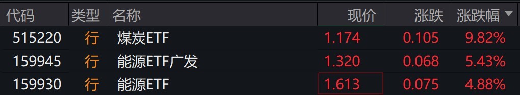 煤炭概念股全天大涨,煤炭ETF涨超9%,能源相关ETF涨约5%