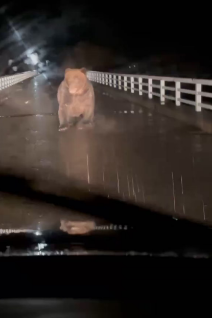 惊险一幕!在北海道一头熊直冲向汽车,司机急忙倒车试图逃离