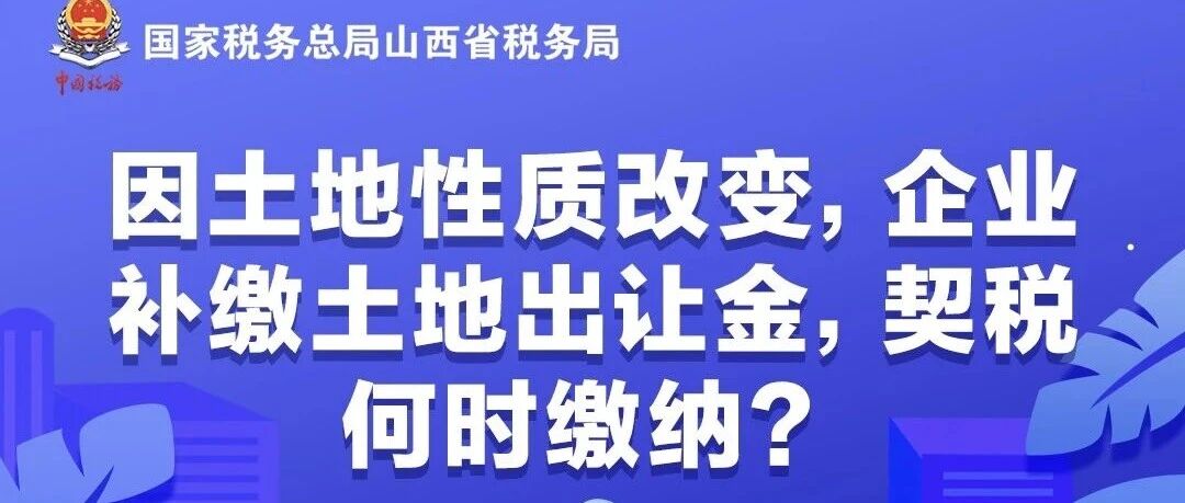 因土地性质改变,企业补缴土地出让金,契税何时缴纳?
