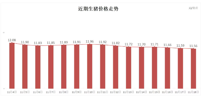 国家级生猪大数据中心:11月18日猪价稳中下跌 全国生猪均价为11.56元/公斤