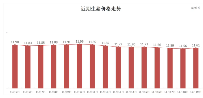 国家级生猪大数据中心:11月19日全国生猪均价11.61元/公斤 环比上涨0.05元