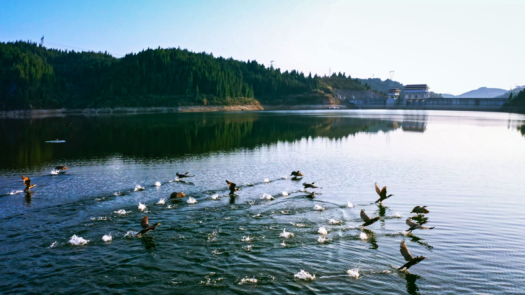 岑巩:碧水引珍禽!野生黑颈鸬鹚与鸳鸯翩跹驻留
