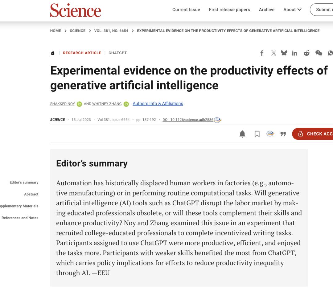 生成式AI不仅在重塑千行百业,也从根本上改变着人类写作、认知与思考的方式。在ChatGPT3.5发布后,一种乐观的预期广为流传:AI将带来"工作平 权"。 2023年,两位麻省理工学院的经济学博士,在《Science》期刊上发表实证研究,为此论调提供了佐证:即生成式AI能显著提升低绩效员工的表现,有望 弥补其与高绩效员工的差距,从而减少不平等。 Science期刊的编辑对此总结道,"技能较弱的参与者从ChatGPT中获益最多,这一点对于未来旨在通过AI来减少生产力不平等的政策具有重要启示。" 然而,两年过去,现实似乎并未完全遵循这一理想路径。 2025年,两位哈佛大学的经济学博士,通过分析2015至2025年间覆盖超6200万员工、超1.5亿次的招聘就业数据,揭示了一个冷酷的真相:生成式AI正以 一种"资历偏向"的方式重塑劳动力市场。 数据显示,2015到2022年间,初级和高级岗位的就业增长曲线基本保持一致,但从2023年开始,两者开始出现分叉:高级岗位继续向上增长,初级岗位则 开始掉头向下。 对于深度拥抱AI的企业,其初级岗位数量在六个季度内相对下降了7.7%,而高级岗位则基本不受影响,甚至略有增长。这一 ...