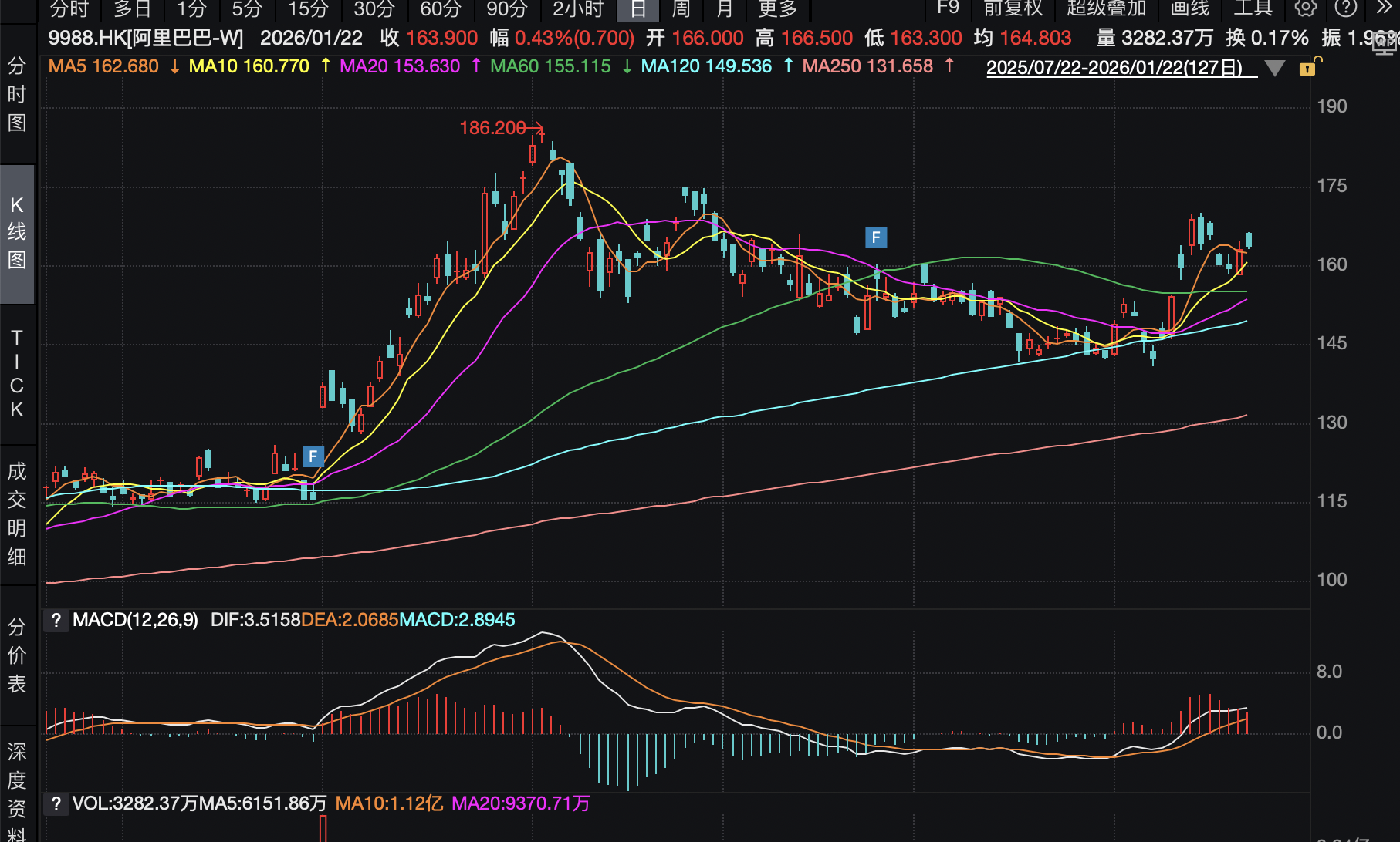 阿里股价较去年同日翻倍,今年涨幅达15%