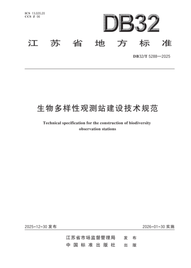 标准的发布与实施,是我省构建"一横两纵+"("一横"为沿长江区域,"两纵"为沿大运河、沿海区 域,"+"为低山丘陵区域)生物多样性观测网络的关键支撑,对于全面提升我省生物多样性观测评估能 力、完善生态保护空间格局、夯实生态保护修复监管水平、展示"强富美高"新江苏的生态本底具有重大 的现实意义和战略价值。下一步,省生态环境厅将组织标准宣贯与实施,确保其全面落地见效。 本报讯(记者吴琼洪叶)日前,江苏省地方标准《生物多样性观测站建设技术规范》(DB32/T5288—2025) 发布,将于2026年1月30日起正式实施,标志着江苏省生物多样性观测基础能力建设迈入规范化、体系 化的新阶段。 作为全国首部省级生物多样性观测站建设技术规范,该标准紧密结合江苏生态系统特征,明确观测站建 设需遵循"可行性、规范性、保护性、代表性"原则,对选址布局、站房建设、设备配置、质量控制及命 名规则等作出全流程规定,既严格衔接国家相关技术导则,又精准贴合我省生态保护实际需求。此外, 该标准不仅突破了传统观测站单一功能局限,率先引入宣教基地模块,构建"观测—科研—科普"三位一 体的新型站房模式;同时紧密结合技术发展趋势,引入AI识别、环境 ...