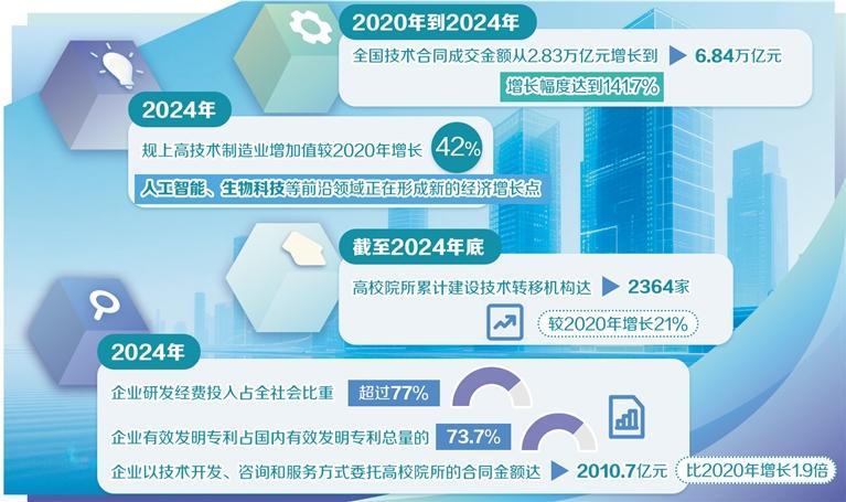 科技成果加速“变现” 2020年至2024年全国技术合同成交额增幅达141.7%