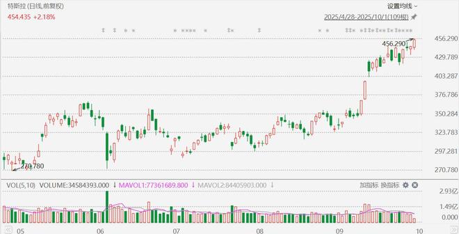 特斯拉创年内新高,总市值重返1.5万亿美元