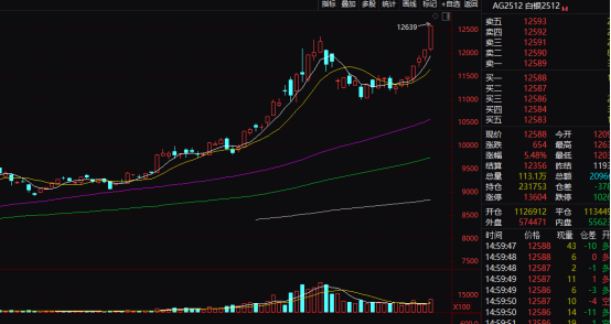 Group 1 - Silver prices have recently surged, with COMEX silver reaching a high of $54.415 per ounce on November 13, and domestic silver futures hitting a record of 12,639 yuan per kilogram, marking a nearly 6% increase [1][2] - Year-to-date, domestic silver futures have risen over 60%, outperforming gold futures, with a notable increase of over 40% in the second half of the year [4] - The rise in silver prices has positively impacted companies involved in silver mining, such as Hunan Silver, which reported a 59.56% increase in revenue year-on-year for the first three quarters of 2025 [10] Group 2 - The increase in silver prices has also created cost pressures for companies that use silver as a raw material, prompting them to adopt various strategies to mitigate these impacts [11] - Companies like Dike Co. have implemented production and procurement models that allow them to pass on silver price fluctuations to downstream customers, thereby reducing direct exposure to price volatility [11] - JinkoSolar has engaged in futures hedging to manage the risks associated with rising raw material prices, particularly in response to the significant increase in silver prices since 2025 [12] Group 3 - Silver's industrial applications, including in electronics, photography, and solar energy, contribute to its price stability and growth, differentiating it from gold, which is primarily viewed as a financial asset [9] - The demand for silver jewelry and related products has increased, with consumers showing interest in silver-plated items as a cost-effective alternative to gold [7]