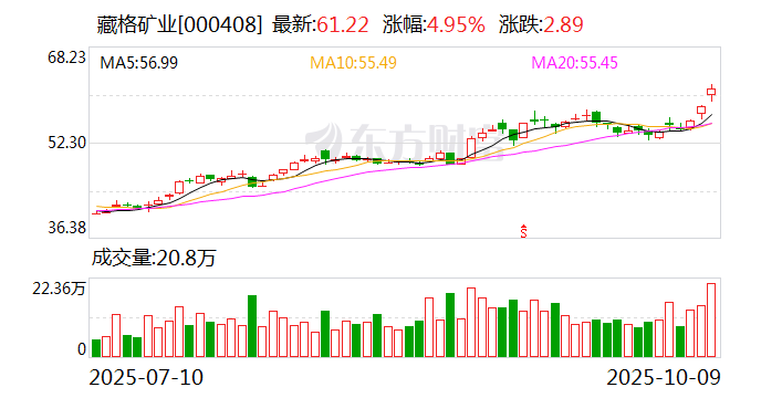 每经记者|胥帅 每经编辑|魏官红 10月9日晚间,市值逼近1000亿元的藏格矿业(000408.SZ,股价61.22元,市值961.29亿元)披露了简短 公告,公司子公司拿到了新的采矿证,里面包含了锂矿品种。 此前,由于矿证不包含锂矿,藏格矿业盐湖提锂项目停产。《每日经济新闻》记者同日从藏格矿业内部 人士处独家获悉,伴随着新采矿证取得,公司的盐湖提锂项目也迎来复产。除了藏格矿业,青海盐湖一 家万吨级盐湖提锂企业也拿到了续期后的采矿证,具备复产条件。 在之前的投资者交流活动中,藏格矿业曾提到,停产期间团队将原计划12月的设备检修提前完成,复产 即可全速运行,全年1.1万吨产销计划暂时不变,最终视复产时点及进度再做微调。 全年1.1万吨产销计划暂时不变 10月9日晚间,藏格矿业公告称,全资子公司格尔木藏格钾肥有限公司(以下简称"藏格钾肥")收到了 自然资源部颁发的《不动产权证书(采矿权)》与《采矿许可证》。 《不动产权证书(采矿权)》主要信息涉及权利期限——2025年8月10日至2029年12月1日,开采矿种包 含矿盐、镁盐、锂矿、硼矿等共伴生矿种,之前矿证中则只包含主矿种钾盐。 正因为矿证中登记的开采矿种没有锂 ...
