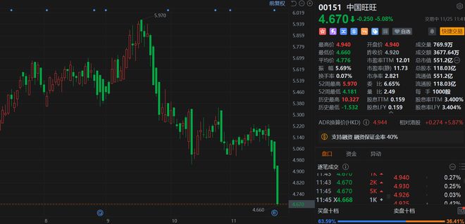 港股异动丨中国旺旺续跌超5% 4日连跌超10% 绩后遭多家机构下调目标价