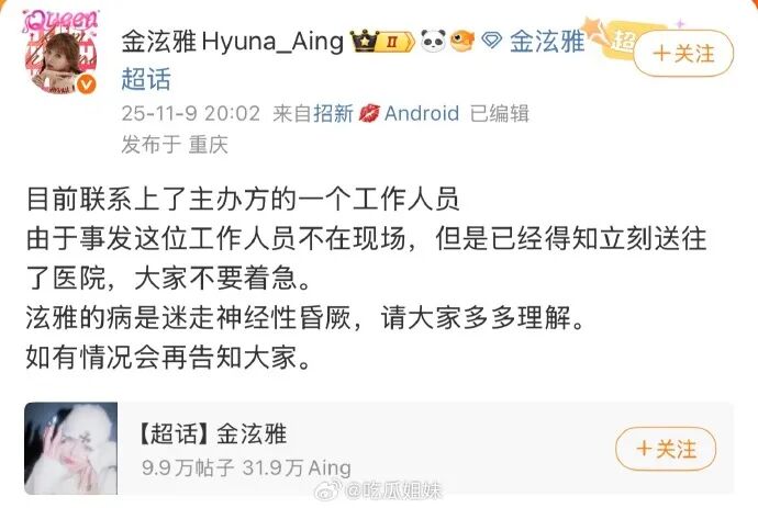 泫雅舞台上晕倒,跟我上班坐地铁晕倒是一个病?