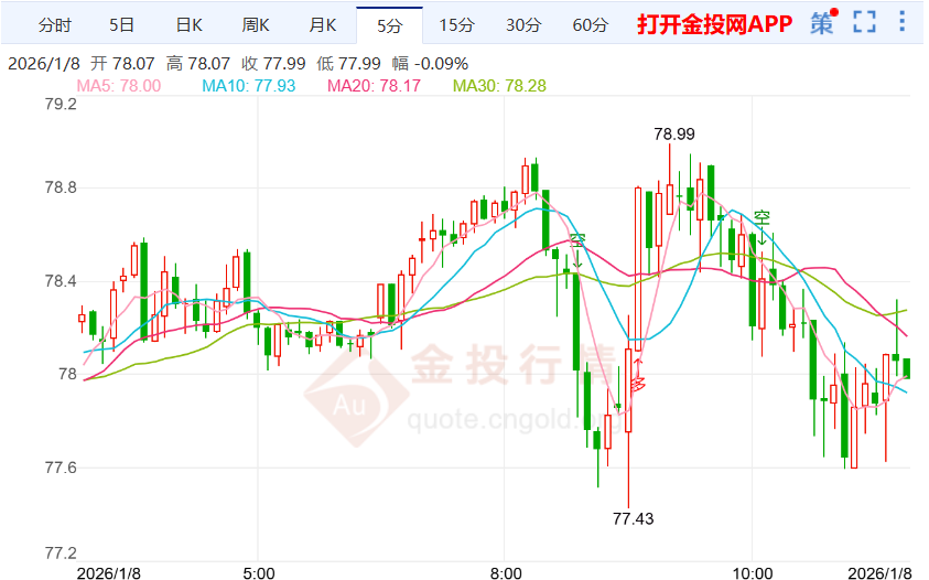 白宫新闻秘书莱维特表示,特朗普政府正在"积极"讨论购买格陵兰岛的可能性,并称特朗普优先考虑外交解决方案, 但"保留多种选择"。 在美国俘虏委内瑞拉总统马杜罗之后,格陵兰岛迅速成为国际新闻的焦点,特朗普重新燃起了对这座北极岛屿的兴趣。 莱维特称,收购格陵兰岛是"总统及其国家安全团队目前正在积极讨论的事情",并称格陵兰岛"有利于美国的国家安 全"。 今日周四(1月8日)亚盘时段,国际白银目前交投于77.98一线上方,今日开盘于78.24美元/盎司,截至发稿,国际白银暂 报78.11美元/盎司,下跌0.07%,最高触及78.99美元/盎司,最低下探77.43美元/盎司,目前来看,国际白银盘内短线偏向 看跌走势。 【要闻速递】 欧盟方面回应称"全力支持和声援"格陵兰岛。欧洲理事会主席科斯塔说:"格陵兰岛属于它的人民。没有丹麦,没有格 陵兰,就不能对丹麦和格陵兰岛的问题做出任何决定。" 【最新国际白银行情解析】 移动平均收敛/发散(MACD)指标从负区间向零线移动,表明在最近的回调后动能正在稳定。相对强弱指数(RSI)位于 47(中性),反映出平衡的市场状况。此外,持续在上述交汇点之上交易验证了看涨偏向。 然而,若出现 ...