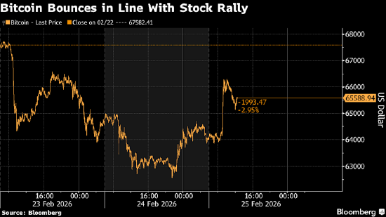 周三,美国总统唐纳德·特朗普向国会发表国情咨文期间,比特币回吐了部分亚洲早盘涨幅——此前其 早盘逆势上涨,突破了持续的下行压力。 北京时间下午1点,比特币涨幅超2%,报约65500美元;特朗普讲话前,其涨幅一度达3.52%,为2月13 日以来最大日内涨幅。以太坊涨幅超2.5%,报1906美元,此前最大涨幅达4.84%。 随着市场情绪转暖,中小市值加密货币也普遍走高。Solana 一度上涨 5.48%,XRP 一度上涨 3.53%,随 后均有所回落。 此番早盘上涨与国情咨文讲话前股市走高同步,特朗普在讲话中为其经济政绩进行了辩护。本周早些时 候,最高法院作出判决,裁定特朗普无权动用紧急权力征收所谓对等进口税(其核心政策主张之一), 这一消息导致加密货币价格大幅跳水;此前特朗普曾援引另一项权力,宣布将对全球征收15%进口税。 Orbit Markets联合创始人Caroline Mauron早盘上涨归因于逢低买入。"本轮反弹大概率是持续抛售之后的 抄底行为,"她表示,并补充称,若比特币触及70000美元,市场叙事将发生转变。 然而,特朗普尚未结束讲话,加密货币市场的上涨势头就已开始减弱。去年重返白宫时被视为支持加 ...