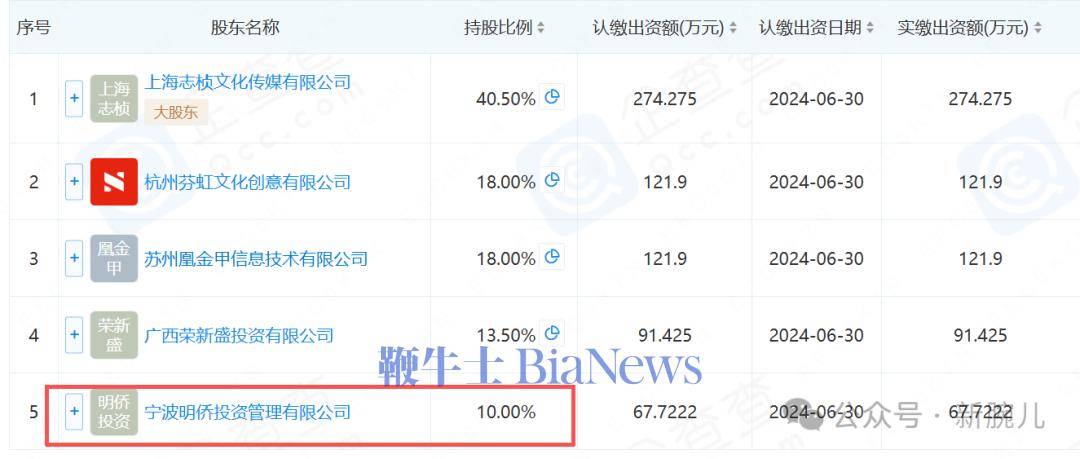 而另一位股东黄镜清即为黄晓明的父亲。 到此时可以确定,黄晓明通过瑆璨文化和母亲张素霞直接持股短剧演员经纪公司炳璨文化54%股权。虽然已经是大股东了,这还不止。 爱投资的黄晓明对短剧的投资版图还在扩大中。一周前,一家叫炳璨文化的公司新签约了一位短剧演员,名叫张屹杨。从红果平台的演员账号信息来看, 该演员出演过多部短剧作品。除了签约张屹杨,还有其他四位短剧演员。在时下,公司签短剧演员不奇怪,值得留意的是这家名为炳璨文化的公司。我们 在企查查上查询了这家炳璨文化,顺着股权关系查询,发现幕后实际控制人另有其人。 从深圳市炳璨文化传媒有限公司的股东列表中看到,四位股东中有一位个人投资者,叫张素秋。另外,一家叫上海瑆璨文化传媒有限公司(下称:瑆璨文 化)持股最高,为51%,第二大股东为我们熟知的炳午。 进一步股权穿透看到,这家上海瑆璨文化传媒有限公司为北京好奇易星文化传媒有限公司全资持股。 再往下看,该公司为青岛太阳花开科技有限公司全资持股。 打开这家青岛太阳花开科技有限公司后,两位股东分别名为张素霞和黄镜清。 那么,这两位股东是什么来头?据企查查资料显示,张素霞为黄晓明的母亲。 炳午是我们最早了解黄晓明投资短剧的公司。 ...