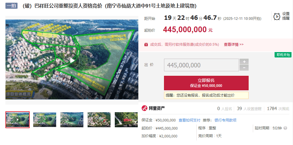 南宁一开发商破产,名下江景盘未开发用地及售楼部被挂牌拍卖,起拍价4.87亿!