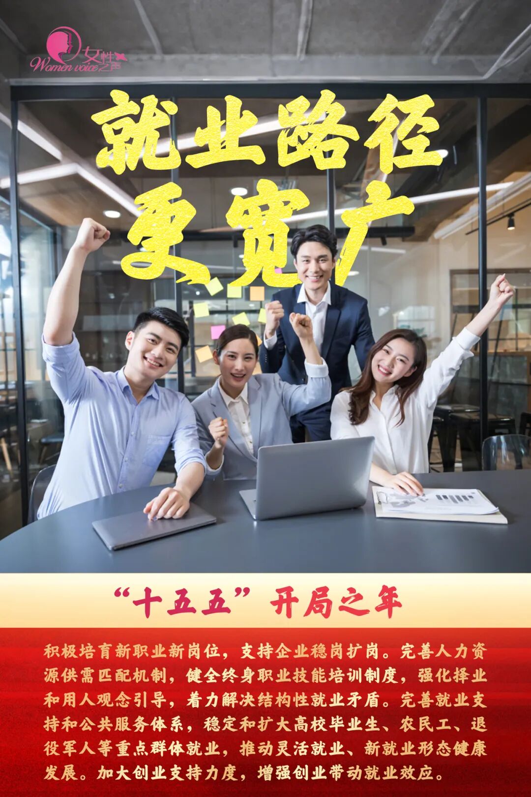 (来源:全国妇联女性之声) 时序更迭,万象更新 2026年如期而至 2026年是"十五五"开局之年 你对新的一年有哪些期待 一起来看这组海报 是否也有你的新年新期待 "十五五" 开局之年 积极培育新职业新岗位,支持企业稳岗扩岗。完善人力资 源供需匹配机制,健全终身职业技能培训制度,强化择业 和用人观念引导,着力解决结构性就业矛盾。完善就业支 持和公共服务体系,稳定和扩大高校毕业生、农民工、退 役军人等重点群体就业,推动灵活就业、新就业形态健康 发展。加大创业支持力度,增强创业带动就业效应。 稳步扩大免费教育范围,探索延长义务教育年限。推动基 础教育扩优提质,统筹义务教育优质均衡发展、学前教育 优质普惠发展,扩大普通高中办学资源,办好特殊教育、 专门教育。推动高等教育提质扩容,扩大优质本科教育招 生规模。 十五五" 开局之年 逐步提高城乡居民基础养老金。健全多层次医疗保障体系。 扩大失业、工伤保险覆盖面,建立健全职业伤害保障制度。 完善社保关系转移接续政策,提高灵活就业人员、农民工、 新就业形态人员参保率。健全社会救助体系。完善空巢老 人、困境儿童、残疾人等群体服务保障体系。坚持男女平 等基本国策,保障妇女儿童 ...