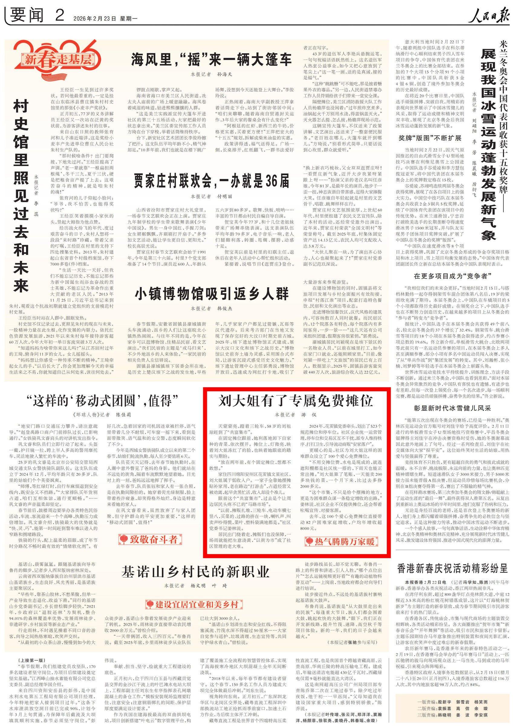 转自:人民日报 2026年2月23日 星期一 王经臣一生见到过许多奖 状。若问他最看重的,一定是挂 在山东临沭县曹庄镇朱村村史 馆里的那张《小麦丰产奖状》。 正月初五,77岁的义务讲解 员王经臣又一次站在泛黄的奖 状前,为游客讲述朱村的往事。 来自山东日照的教师张育 河和儿子凑近端详,这是奖给小 菱丰产先进单位曹庄人民公社 朱村生产队的。 "那时候啥条件?出门要爬 坡,下地先过河。"王经臣提高了 声调,"老一辈就靠'一根扁担两 根绳',冬干三九,夏干三伏,硬 是把粮食亩产提了上去。这艰 苦奋斗的精神,就是咱朱村 的魂!" 张育河的儿子仰起小脸问: "爷爷,我不怕苦,也能得奖 状吗?" 王经臣笑着摸摸小家伙的 头,竖起大拇指为他点赞。 经历战火纷飞的年代、度过 艰苦奋斗的日子,朱村人想将一 段段"来时路"珍藏。带着父亲 的叮嘱,王经臣在村里的支持下 四处搜集史料。2013年,朱村建 起山东省首个村级档案馆,存下 7000多卷(件)档案。 "生活一天比一天好,但我 们不能忘记历史,不能忘记那些 为新中国诞生而浴血奋战的烈 士英雄,不能忘记为革命作出重 大贡献的老区人民。"2013年 11月25日,习近平总书记来到 ...