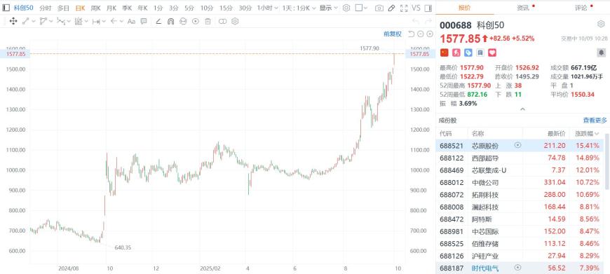 科创50指数涨超5% 中芯国际等多只芯片股创历史新高
