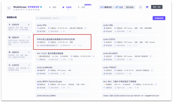 中科天机高质量气象数据集上线魔搭社区,携手共建科学智能新生态