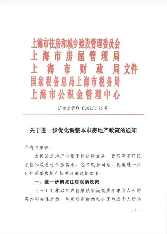 点击【樱桃大房子】关注并 2026年新年开工第二天,上海就甩出楼市新政: 非沪籍外环内购房社保缩至1年;满3年可在外环内增购1套;居住证满5年可直接买1套,不用社保个税。 新政目的就一次个,放松限购,增加市场的有效需求。 这一次主要是把有居住证的群体放宽了,社保不再是唯一的限制,下一轮估计是直接放开外环限购了。 对于这一次上海的新政,我直接说吧:上海这波操作,绝对不简单。 五部门联合发文,隔天就执行,这已经是不到两年里,上海第四次大幅放松限购。 但最反常、最值得品的点是什么? 上海楼市根本没冷透!二手房连续三个月成交破2万套。 据上海中原地产数据,2026年1月,上海二手住宅成交2.03万套,环比微跌0.38%,同比增加26.69%。 成交量来看,上海明明已经走出暖冬,换以前,政策早观望了。 可这次偏偏市场刚有点起色,就直接加码托市,背后的心思,藏都藏不住。 核心目的:去库存、稳房价,一个比一个迫切。 上海楼市一直是冰火两重天,核心区豪宅抢着买,可外环外新房库存占了全市近八成,不少区域去化周期超18个月,压得喘不过气。 前几轮政策把外环外限购松绑了,但库存压力还是没彻底化解,只能继续把外环内门槛往下砍,把购买 ...