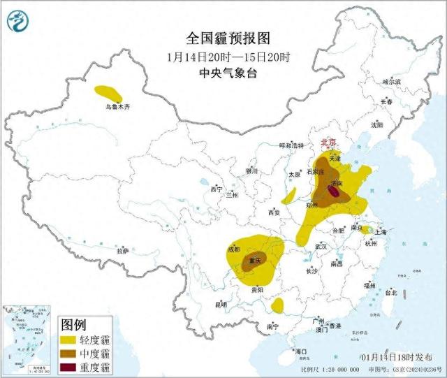 Summary of Key Points Core Viewpoint - The article discusses the air quality conditions across various regions in China, highlighting the presence of haze, fog, and dust, with specific forecasts for different areas over the coming days. Group 1: Haze Conditions - From the night of January 14 to January 15, light to moderate haze is expected in southern and central North China, most of the Huanghuai region, eastern Jianghan, and southern Sichuan Basin, with some areas experiencing heavy haze [1]. - The Beijing-Tianjin-Hebei region will see light haze in the central and southern parts, with moderate haze in some areas and heavy haze in southwestern Shandong. This haze is expected to weaken or dissipate starting January 16 due to cold air influence [5]. - The Yangtze River Delta region will experience light haze in the northern part from January 15 to 17, with better air dispersion conditions starting January 18 [6]. Group 2: Fog and Dust Conditions - From the night of January 14 to the morning of January 15, areas in eastern Sichuan Basin, central and eastern Guizhou, and northern Jiangsu will experience heavy fog, with visibility dropping below 200 meters in some locations [3]. - In the Fenwei Plain, light haze is expected in most areas, with moderate haze in some regions over the next week [7]. - The northwest region, particularly the northern slopes of the Tianshan Mountains in Xinjiang, will see light haze, with some areas experiencing moderate haze and local dust or floating dust conditions [11]. Group 3: General Air Quality Forecast - The central and eastern parts of the Huazhong region will have intermittent light haze from the night of January 14 to January 16, with improved air dispersion conditions starting January 17 [8]. - The Pearl River Delta region is forecasted to have generally good air dispersion conditions with no significant haze expected over the next week [10]. - The northeast region will experience active cold air movements, leading to good air dispersion conditions and no significant haze [11].