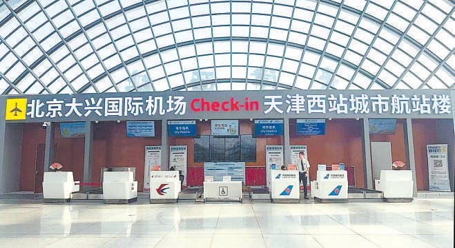 如今,除了北京市民,天津、河北旅客想在北京坐飞机,也能在家门口的城市航站楼一站式办理值机、 行李安检和行李托运。 作为支撑雄安新区建设的京津冀区域综合交通枢纽,目前大兴机场运营草桥、廊坊、天津西站3座城市 航站楼,而老牌机场首都机场也在廊坊与大兴机场一同设置城市航站楼,两大机场城市航站楼覆盖京津 冀三地。三座城市航站楼自投运至今就已累计服务旅客超254万人次,让旅客在城市端享受从"家门 口"到"登机口"的一站式便捷出行,不仅拉近了机场与三地市民之间的距离,提升了交通的便利性,更 有助于促进京津冀区域经济一体化发展。 天津市红桥区 天津西站城市航站楼 托运行李办值机 高铁站里等飞机 您听说过在高铁站里等飞机吗?今年6月,位于天津西站的大兴机场城市航站楼开始试运营,旅客在高 铁站里就能完成机场值机、托运等手续,坐着高铁直达机场。 2023年年底,津兴城际铁路通车运营,从此天津西站有了直达大兴机场的高铁班次,天津市民最快只需 40分钟,就可以从天津西站到达大兴机场。 记者注意到,天津西站城市航站楼位于车站候车大厅北侧,正对着旅客候车的南北走廊。城市航站楼共 有六个柜台,柜台旁还配备了机场同款"航显",滚动显示着航班 ...