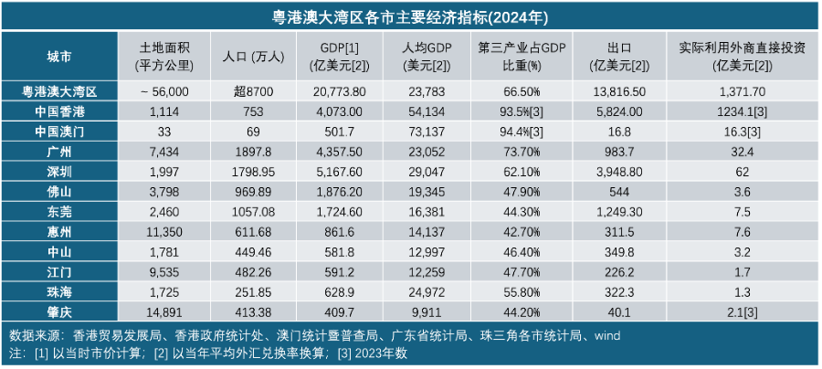 南方财经记者郑玮 深圳、珠海报道 什么是"城市群"? 对纳思达(002180)股份有限公司董事兼副总裁张剑洲来说,这意味着产业链上下游能够快速在邻近城市间完成产业配套。"我 理解这也是产业创新发展的必然趋势,从过去的跟随者到现在的领跑者,没有细化的社会分工是完不成的。目前,我们的供应 链70%以上能够在粤港澳大湾区内解决。" 在澳门大学健康科学学院教授、珠海澳大科技研究院院长陈国凯看来,对城市群建设的直观感受则与人直接相关。"2019年我们 从澳门来珠海要花一个半小时,现在我开车10分钟就可以从澳大来到横琴。" 产业协同、人才流动……这是城市群发展的不同切面,背后要解决的关键问题都是:如何让1+1>2。 基于技术、人才、资金等发展要素的快速流动,《粤港澳大湾区蓝皮书:粤港澳大湾区建设报告(2025)》显示,2024年粤港 澳大湾区以14.79万亿元的经济总量,超越了纽约和旧金山两个世界级湾区,与东京湾区并列全球经济规模第一梯队,人均GDP 估算约17.02万元。 今年8月,《中共中央 国务院关于推动城市高质量发展的意见》提出,要发展组团式、网络化的现代化城市群和都市圈,并明确 支持京津冀、长三角、粤港澳大湾区 ...
