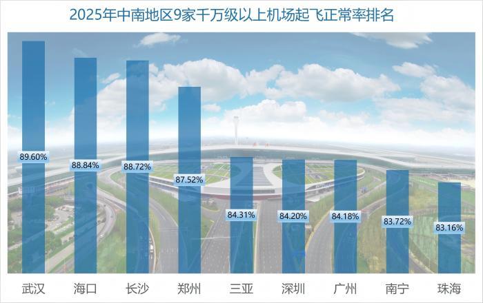 2025年武汉机场航班起飞正常率居中南地区榜首