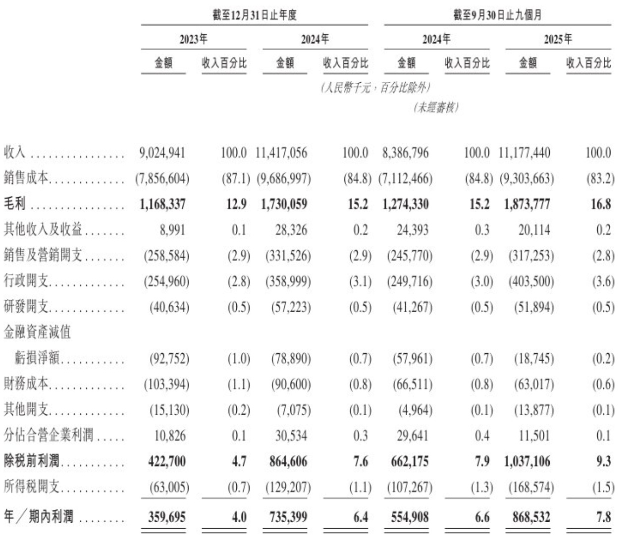 港交所主板再迎农业科技领域重磅上市申请。1月12日,海大国际控股有限公司(简称:海大国际)正式向港交所递交招股书,由摩根大通、中金公司 (601995)及广发证券联合保荐。 作为一家以饲料业务为基石、面向全球新兴市场的技术驱动型农业综合解决方案提供商,海大国际近年业绩呈现强劲增长态势:2023年至2025年前三季度, 公司营收从90.25亿元攀升至111.77亿元,同期溢利更实现跨越式增长,从3.6亿元大幅提升至8.69亿元,展现出在全产业链布局与全球化运营下的显著盈利提 升能力。 公司营收从2023年的90.25亿元增长至2025年九个月的111.77亿元,净利润亦从3.60亿元增至8.69亿元。然而,净利润率始终低于8%,显示其仍处于微利运营 状态,盈利增长受原材料价格与行业周期影响显著,结构稳定性不足。 尤其突出的是行政开支,其占收入比重从2.8%升至3.6%,金额增幅显著高于营收增长,折射出公司规模扩张中可能存在的管理效率下降或成本控制失灵问 题。销售与研发费用占比虽稳,但并未带来盈利能力的实质性突破,投入产出效率有待验证。 | | | 截至12月31日正午度 | | | | 截至9月30日正八個月 ...