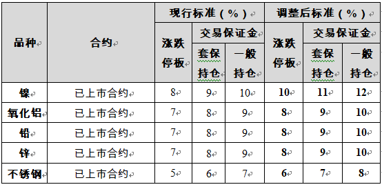 镍、氧化铝、铅、锌、不锈钢 上期所调整多个期货合约风控参数