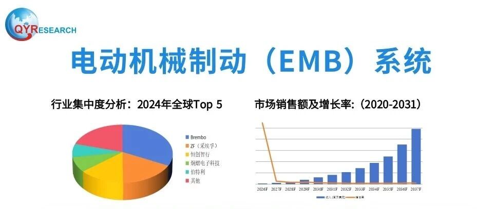 电子机械制动( EMB )系统在现代汽车工业中扮演着重要的角色,它融合了电子控制技术和机械制动系统,为车辆提供了更高效、智能的制 动解决方案。纯电控制的电子机械制动系统( EMB )完全不含机械结构,由电机产生制动力,控制制动器制动。在后续发展中完全通过信号 线接受计算机提供的制动信号来提供制动力,因此也成为线控系统。 注:当前 市场 EHB 液压式线控制动是主流系统, EMB 是未来发展方向,目前 EMB 产品尚未商业化, 但是已经有部分企业已经实现了 EMB 系统 的 完 整 设计并且通过 整车 试验,并给出了预计的商业化年限。 本报告中, 2022 年 -20 25 年的数据基于 EMB 制造商测试样本产生的收入, 2 026 -203 7 年 的数据基于 EMB 逐步商业化后的预测数据。 QYR 电动机械制动(EMB)系统行业目前现状分析 研发进度与技术成熟度 当前 EMB 经过二十余年的技术演进,随着电机、传动机构与控制算法的进步,研发进入从试验样机向小批量可量产的转化期。核心技术集中 在小直径高精度电机、滚珠丝杠等高精传动件、轮边执行器的热管理与磁衰退控制、以及能够替代传统力传感器的电机闭环控制算 ...