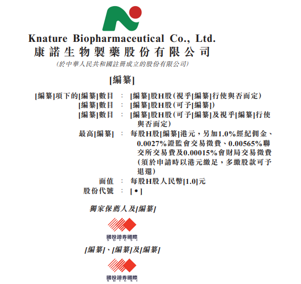 Group 1 - The core viewpoint of the news is that Kangnuo Biopharmaceutical Co., Ltd. has submitted a listing application to the Hong Kong Stock Exchange, with Guotou Securities International as its sole sponsor [1] - Kangnuo Biopharmaceutical focuses on mitochondrial medicine and health products, covering research and development, drug production, and commercialization [1] - The company is primarily researching diseases caused by mitochondrial dysfunction and aims to apply NAD+ in the fields of cardiovascular diseases, neurodegenerative diseases, reproductive health, and aging [1] Group 2 - The company is registered in the People's Republic of China and operates as a joint-stock company [2] - The listing will involve H shares, with the number of shares depending on the exercise of options [3] - The maximum price for each H share is set in Hong Kong dollars, with additional fees including a brokerage commission and various transaction fees [3]