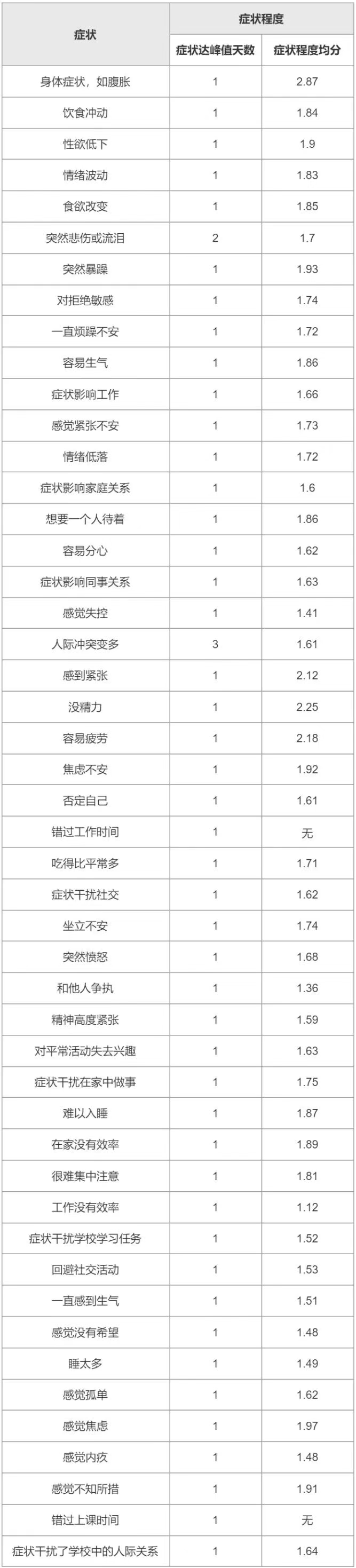本文来自微信公众号:简单心理 (ID:jdxl2000),作者:崇衫,责编:罗文,原文标题:《80%以上 的女性都曾受困于这种痛苦:它不是你的错》,题图来自:AI生成 年龄越大,越不存在毫无征兆的月经。 今年4月上映的电影《黎明的一切》中,女主角藤泽每次来月经前,都会难过,甚至无缘无故地对别人 大发脾气。她患有"PMS(经前综合症)",一种经常被忽视,却严重影响生活质量的女性疾病。 很多女性都有自己的"月经信号"。比如,我睡饱起来还是困得要死时,就会在包里备好卫生巾。有的人 每次经前会忽冷忽热,疯狂冒虚汗,还有人会患得患失,上着班突然流眼泪。 女性在月经前有太多令人痛苦的反应了。关键是,它还非常普遍。 一项针对140个国家23万名女性的调查研究显示,85.28%的女性一生中都至少出现一次pms症状[9]。 你并不孤独。很多人不明白自己的身体究竟怎么了,为什么要经历这么难受的"预痛期"?以及,我们究 竟该如何面对"PMS(经前综合症)"? "原来这就是PMS啊" 电影里,藤泽在PMS发作时,会对上司发脾气,完不成领导布置的工作,最终只能从东京的公司辞 职。 医学上将PMS的发作流程总结为:"通常在经前10天~1 ...