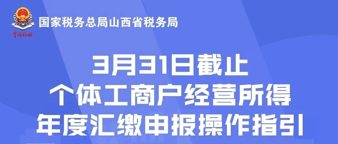 山西:3月31日截止,个体工商户年度汇缴申报操作指引!