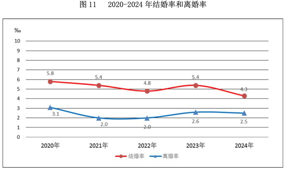 以下文章来源于财经杂志 ,作者王静仪 财经杂志 . 《财经》杂志官方微信。《财经》杂志由中国证券市场研究中心主办,1998年创刊,秉承"独立、独 家、独到"的新闻理念,以权威性、公正性、专业性报道见长,是政经学界决策者、研究者、管理者的 必读刊物。 本文来自微信公众号: 财经杂志 ,作者:王静仪,编辑:王延春,原文标题:《2024年中国结婚 610.6万对,离结比为57.5%》,题图来自:视觉中国 2024 年全国结婚登记对数为 610.6万对,结婚率为4.3 ‰ ;依法办理离婚手续 351.3万对,离婚率为 2.5 ‰ 。民政部 7月30 日公布的《 2024 年民政事业发展统计公报》显示上述数据。 " 结 (离) 婚率 " 是指在一定时期内,每 1000人中结 (离) 婚的数字,也就是说, 2024年每 1000个人里,就有4.3对夫妻结婚、2.5对夫妻离婚。 " 离结比 " 则是某段时间内离婚登记人数占结婚登记人数比重,按照 2024年的数据来看,离结比为 57.5%,这意味着 平均每100对夫妻结婚,有57.5对夫妻离婚。 2024年有610.6万对新人结婚,较2023年减少157.4万对,降幅达20 ...