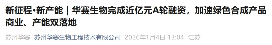 融资资金将重点用于绿色生产产能的建设与落地,这是将实验室创新成果转化为大规模市场供给的关键一步。产能的突破将极大加速公司核心产 品的商业化进程,满足日益增长的市场需求,为客户提供更稳定、优质、绿色的产品解决方案。 今日,华赛生物宣布于近日完成近亿元人民币的A轮融资。本轮融资由兴湘资本领投、张家港产投、清科产投等知名机构与知名产业投资人共同参 与,凯乘资本担任独家财务顾问。 ...