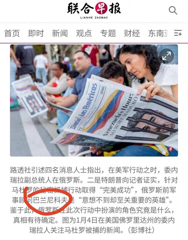 速览 - 网传"俄罗斯前军事顾问巴兰尼科夫以1美元向美方提供关键情报、协助抓捕马杜罗"的说法缺乏可靠来 源。相关传言实为中文网络平台上标注为虚构创作的故事内容,在脱离原有语境后被当作事实传播。 - 马杜罗被强行控制的经过,已有美军高层在公开场合说明,相关行动细节与网传说法无关。 事件背景 1月3日凌晨,美军强行控制委内瑞拉总统马杜罗并将其带往美国。事件发生后,网络上流传多种说法, 其中一则传言称,"美国总统特朗普向记者证实,针对马杜罗的秘密抓捕行动取得'完美成功',俄罗斯 前军事顾问巴兰尼科夫是'意想不到却至关重要的英雄'。" 部分说法借特朗普之口渲染称,"巴兰尼科夫在数月前主动通过加密渠道与美方情报机构取得了联 系","他只象征性地要了一美元",并借路透社的名义宣称"巴兰尼科夫提供的并非普通情报"。 1月6日,联合早报发布的评论文章截图。相关内容现已被修改。 截图。 明查 经核查,路透社官网及其近期公开发表的所有报道中,均未提及 "巴兰尼科夫"其人。对白宫网站以及 多家美国媒体刊登的特朗普近期公开讲话进行检索,也没有发现能够印证网传说法的内容。 关键词搜索发现,所谓 "巴兰尼科夫用1美元交换情报"的说法至少 ...