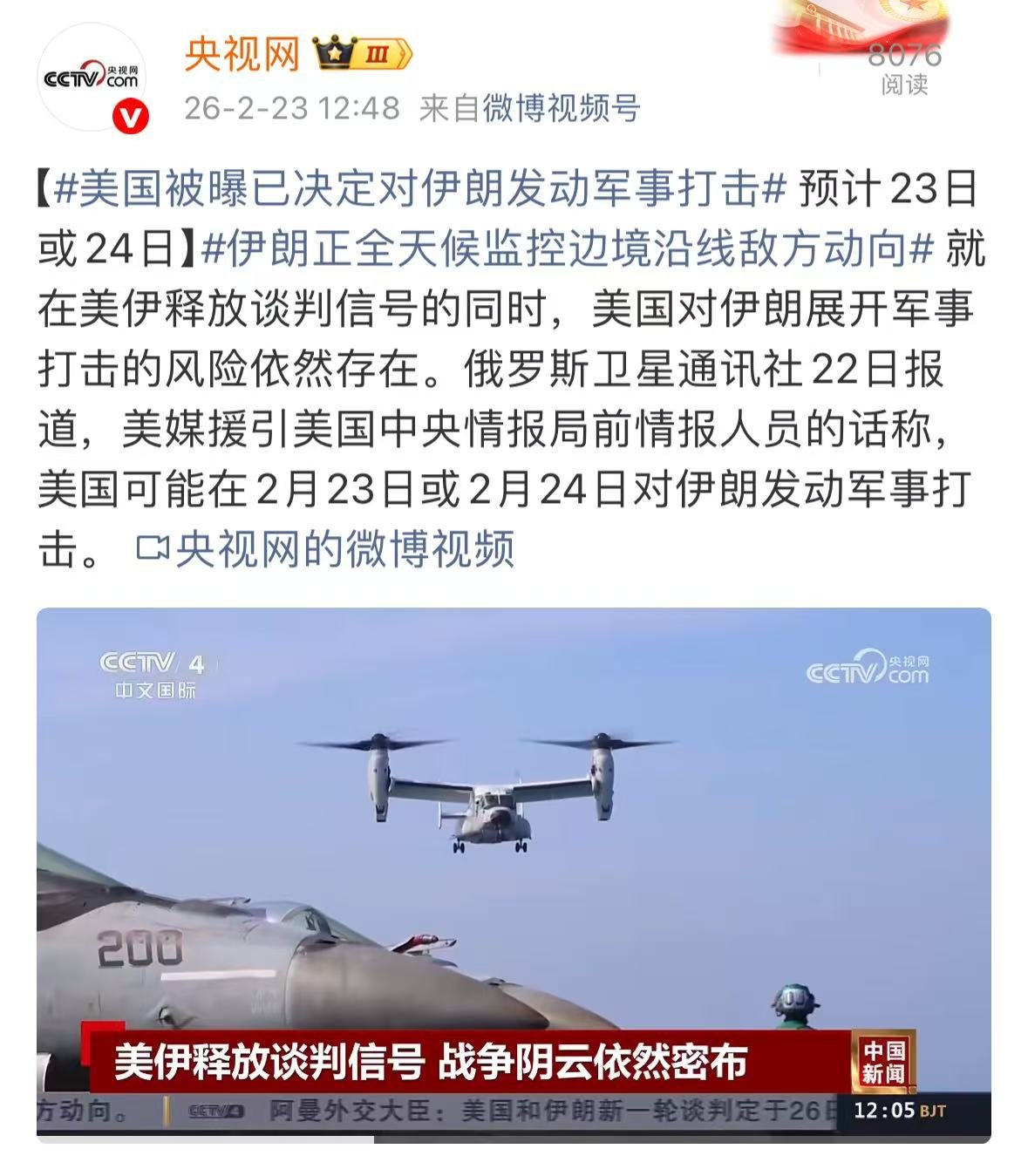 消息称美国可能在2月23日或2月24日对伊朗发动军事打击