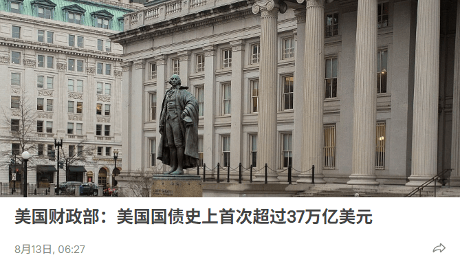 现在官方确认,美国联邦政府债务规模总额首次超过37万亿美元,又一次创造了新纪录,现在每一个美国民众的头上都背负着超过10万美元的债务。每年的 利息支出超过1万亿美元,可以说美国现在完全到了发新债还利息的程度了,为了维持国债信用不崩盘,到期的国债兑付和利息支出,只能用发新债做唯一 解决方案。这已经进入到"庞氏骗局"崩盘前的最后阶段了? 专业分析,未来美国国债规模还会继续增加,主要源于2大因素,第一就是美国财政状况收支严重不平衡。社保支出,国债利息、医疗支出,军费是美国政 府四大开支,而且这四项开支都是刚性的,很难被缩减,也就意味着联邦债务有可能会持续增加。第二就是利息支出越来越多,这部分的资金来源已经无法 解决,只能不断发规模越来越大的新债筹集资金。 其实此次国债规模创新高,还是特朗普引发的,因为他在7月4日签署了《大而美法案》,为了落实政策,再一次提高了美国政府债务上限,之后在短短37天 内,美国国债总额就激增7800亿美元,日均增长220亿美元,平均每秒增加5.5万美元。当然这个法案最大的批评者就是特斯拉的马斯克,他持续在抨击,但 是一点效果都没有。 在没有马斯克的掣肘之后,特朗普抛出了他的史无前例的《大而 ...