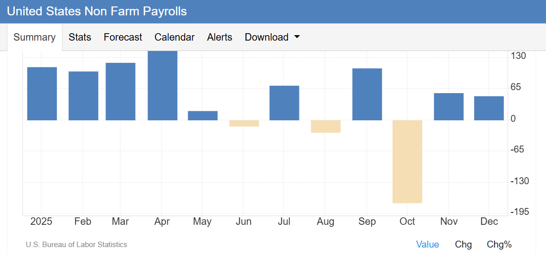美国非农数据作为反映美国经济活力的"晴雨表",其公布不仅直接影响市场对经济前景的判断,更深度 关联美联储政策走向与全球资产价格波动,结合2026年1月8日市场聚焦的非农报告及相关背景,可从以 下维度解读核心信息(观点仅供参考): 首先,非农数据是判断美国经济"软着陆"进程的关键标尺。数据包含的非农就业人数、失业率、平均时 薪三大核心指标,分别对应就业市场热度、劳动力供需平衡与薪资通胀压力——若12月新增就业如预期 增至7.3万人(高于11月的6.4万人)、失业率降至4.5%,则印证美国劳动力市场仍具韧性,说明经济在 美联储此前降息后未出现大幅衰退,支撑"软着陆"预期;反之,若新增就业不及预期或失业率超预期上 升,可能揭示经济增长动能减弱,引发市场对衰退风险的担忧。 ADP就 业人数,来源:tradingeconomics 尤其此次非农报告是美国政府43天停摆后首份按时出炉的就业数据,数据"真实性与完整性"显著提升, 其参考价值远超此前受数据空缺影响的替代指标(如ADP数据),能更精准反映当前经济真实状态。 其次,非农数据直接左右美联储货币政策路径,进而影响全球流动性预期。作为美联储制定利率政策的 核心参考指标 ...