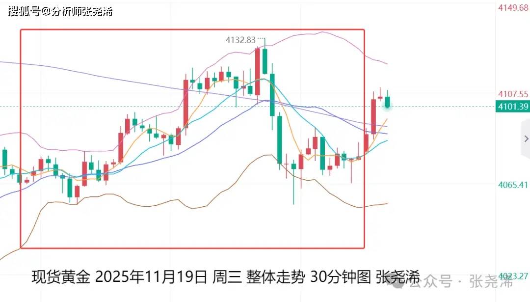 张尧浠:12月降息预期再反转、金价短期再待非农指引 上交易日周三(11月19日):国际黄金冲高回落倒垂收涨,多头动力未能持稳增强,但也处在中轨上方,美联储会议纪要整体显示未来仍偏向宽松政策,故 此,前景上,金价仍偏向看涨。短暂的回撤或震荡调整,也仍是在为多头制造入场机会。 具体走势上,金价自亚市开于4066.08美元/盎司,先行录得日内低点4055.54美元,之后震荡反弹回升,一直延续到美盘23点时段录得日内高点4132.38美 元,并就此连续跳水走低,2小时左右再度触及日内低点一线,最终触底回升,收于4077.77美元,日振幅76.84美元,收涨11.69美元,涨幅0.29%。 影响上,日内受到周二公布的ADP周度就业数据显示就业疲态延续,增强了市场对美联储可能在12月降息的预期等预期推动金价走强,但美盘时段此预期 又被反转,美联储12月降息预期大幅降温至30%,美俄被曝绕开乌克兰秘密拟定28点和谈框架减弱避险情绪,美元指数强势走强收涨,打压金价连续跳 水,最终由于支持买盘和美联储会议纪要:多数官员认为随着时间的推移会进一步放松政策而限制了回落力量,使其反弹收涨。 展望今日周四(11月20日):国际黄金开盘 ...