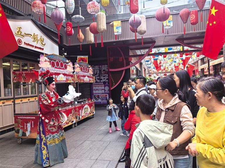 10月3日,在易俗社文化街区,秦腔演员为游客表演经典唱段。 中秋与国庆相逢,8天的长假为古城西安带来新一轮文旅消费热潮。承载着周秦汉唐饮食文化精髓的陕 菜,正通过一场场精心策划的节庆活动焕发勃勃生机。 西安饭庄、德发长、同盛祥、老孙家等老字号品牌在保持特色的基础上,围绕"文化+互动+美食"这一核 心主题,打造出一系列独具创意的文化体验活动。 10月3日,德发长钟楼店的"诗宴长安"唐诗飞花令活动成为用餐高峰期的亮点。身着古装的NPC引导食客 参与唐诗对答,答对者可获赠特色小菜或精美礼品。 "诗词文化与餐饮体验融合的方式,让人耳目一新。我们在品味佳肴的同时,深刻感受到盛唐文化的魅 力。这顿饭让人回味悠长。"南京游客刘振笑着说。 背景墙上,"此曲只应天上有,人间能得几回闻"的诗句下写道"此曲只应天上有,网络能刷几回新",反 映了网络时代信息泛滥、难以分辨真伪的现状;"欲穷千里目,更上一层楼"的诗句下写道"欲穷千里目,更上 十层楼",调侃当代社会的内卷现象…… "这些热梗与古诗词相遇,碰撞出贴近时代的火花,让人在会心一笑间,感受当代青年的幽默。"游客李 杰说。 非遗大师手作活动同样引人注目。在同盛祥钟楼店、德发长钟楼 ...