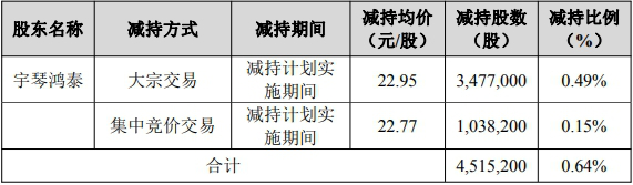 2025年6月3日,宇信科技发布的关于股东询价转让结果报告书暨持股5%以上股东权益变动触及5% 整数倍的提示性公告显示,本次询价转让的价格为18.28元/股,转让的股票数量为10,560,855股。截至 公告披露日,上述询价转让计划已实施完毕。出让方实际转让的股份数量为10,560,855股,询价转让的 价格为18.28元/股,交易金额为193,052,429.40元。本次权益变动后,转让方宇琴鸿泰持有公司股份比例 由26.17%减少至24.67%,持有公司权益比例变动触及5%的整数倍。 2023年1月6日,宇信科技发布的关于控股股东股份减持计划实施完毕的公告显示,近日,公司收到 宇琴鸿泰出具的《关于控股股东股份减持计划实施完毕的告知函》,宇琴鸿泰通过大宗交易方式减持公 司股份6,889,000股(占公司股份总数的0.9688%);截至公告日,宇琴鸿泰已经累计通过大宗交易方式 减持公司股份14,000,000股(占公司股份总数的1.9688%),上述减持计划已经实施完毕。经计算,宇 琴鸿泰减持金额为191,544,490元。 中国经济网北京11月24日讯 宇信科技(300674.SZ)11月21日晚间发布关于 ...