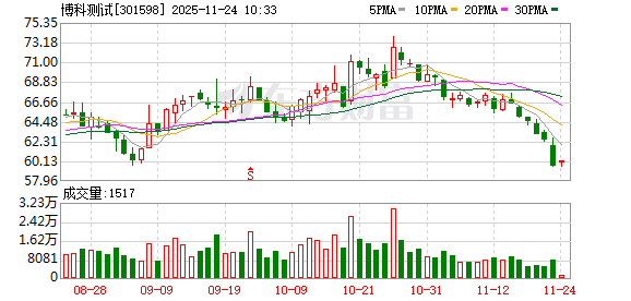 融资融券数据显示,该股最新(11月21日)两融余额为8097.35万元,其中,融资余额为8097.35万元, 本期筹码集中以来融资余额合计减少288.45万元,降幅为3.44%。 公司发布的三季报数据显示,前三季公司共实现营业收入3.62亿元,同比增长12.32%,实现净利润 7797.97万元,同比增长19.60%,基本每股收益为1.3240元,加权平均净资产收益率7.90%。(数据宝) 博科测试11月24日披露,截至11月20日公司股东户数为7909户,较上期(11月10日)减少623户,环比 降幅为7.30%。这已是该公司股东户数连续第3期下降。 证券时报·数据宝统计,截至发稿,博科测试最新股价为60.01元,上涨0.69%,本期筹码集中以来股价 累计下跌9.96%。具体到各交易日,3次上涨,7次下跌。 (文章来源:证券时报网) ...