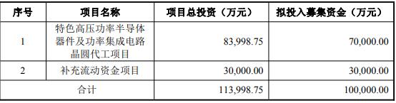 本次发行的定价基准日为发行期首日。本次向特定对象发行股票的发行价格不低于发行底价,即发 行价格为不低于定价基准日前20个交易日公司股票交易均价的80%。 本次向特定对象发行股票的种类为境内上市的人民币普通股(A股),每股面值为人民币1.00元。 本次向特定对象发行的股票在锁定期届满后,在深圳证券交易所创业板上市交易。本次向特定对象发行 A股股票数量按照募集资金总额除以发行价格计算得出,且不超过本次发行前公司总股本的30%,按本 预案出具之日的总股本计算即不超过51,337,521股(含本数)。 本次向特定投资者发行A股股票募集资金总额不超过100,000.00万元(含本数),在扣除发行费用 后将用于特色高压功率半导体器件及功率集成电路晶圆代工项目、补充流动资金项目。 | 序号 | 项目名称 | 项目总投资(万元) | 拟投入募集资金(万元) | | --- | --- | --- | --- | | 1 | 特色高压功率半导体 器件及功率集成电路 晶圆代工项目 | 83.998.75 | 70,000.00 | | 2 | 补充流动资金项目 | 30,000.00 | 30,000.00 | | | 合计 | ...