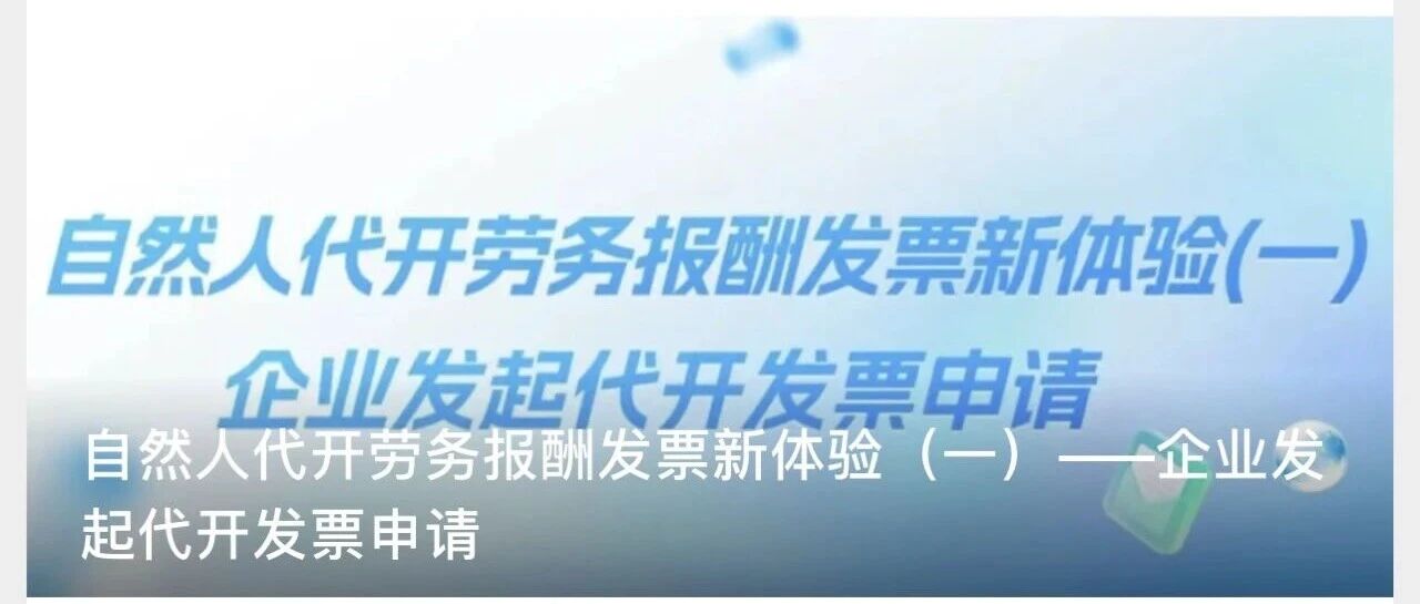 欢迎扫描下方二维码关注: 自然人代开劳务报酬发票新体验(一) —— 企业发起代开发票申请 代开 劳务报酬发票 不用自己跑大厅啦! 快来瞧瞧有哪些新变化~ (一)业务概述 通过个税APP提供全国统一渠道,实现自然人代开劳务报酬数电发票以及缴税申报一体化的全链路管理服务。 场景具体限 定条件如下: (1)收入性质:限定为 劳务报酬 。 (2)业务限制: 限定为单次仅支持开具金额 不超过十万元的发票 。 点击"发起申请"按钮开始为代开申请人发起劳务报酬发票代开信息。 (3)业务对象:限定为自然人与法人(扣缴义务人)之间,且发起人限定为扣缴义务人。 (4)发票类型:仅支持开具 数电发票 。 (5)业务类型:涉及数电发票业务,其中自然人提供劳务服务、开具发票,法人(扣缴义务人)支付劳务报酬、接收发 票。涉及申报业务,其中自然人负有增值税及附加、个人所得税的纳税义务,法人负有个人所得税扣缴申报义务。 (二)业务流程 扣缴义务人发起劳务报酬发票开票提醒→自然人确认代开发票申请→缴纳增值税及附加→发票开具→扣缴申报(关联发 票)。 (三)操作指引 劳务报酬发票代开发起 步骤一: 登录自然人电子税务局WEB端 企业办税人员登录 ...