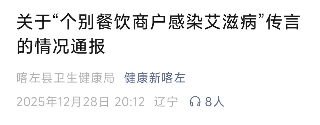 辽宁喀左辟谣“个别餐饮商户感染艾滋病”